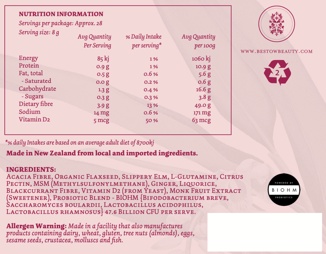 Bestow Gut Love + is a premium gut health powder thoughtfully formulated in Aotearoa, New Zealand to support a balanced digestive system and promote well-being from the inside out.